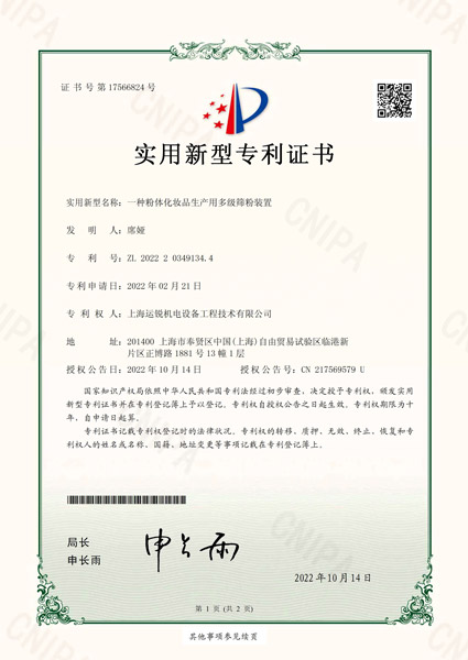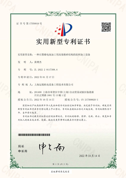 Компания успешно поставила производственные линии для нанопорошка, новые производственные линии для углеродно-кремниевых анодных материалов и несколько производственных линий для перегрева фруктозы. Его технические и инженерные возможности в области пищевых продуктов/новых материалов/нанопорошков и других областях были улучшены и совершенствованы. Компания разработала гибкую интеллектуальную производственную линию для подготовки микро- и наноматериалов с независимыми правами интеллектуальной собственности. В то же время он подал заявку на ряд национальных патентов и авторских прав, и был оценен как научно-техническое предприятие в Шанхае.